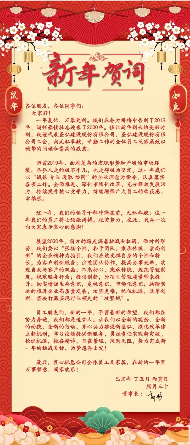圣弘股份董事长新年贺词