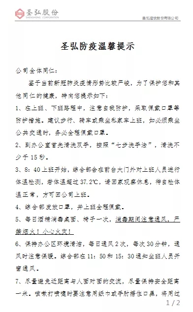 圣弘股份:延长春节假期通知和关于提前返蓉自