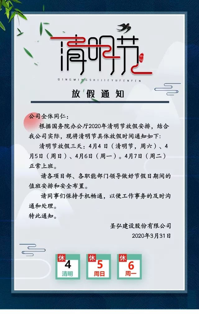 圣弘股份:清明节放假通知!