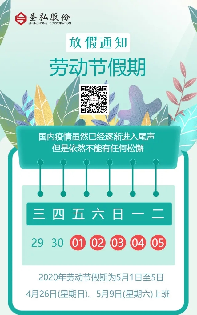 圣弘股份:劳动节放假通知!