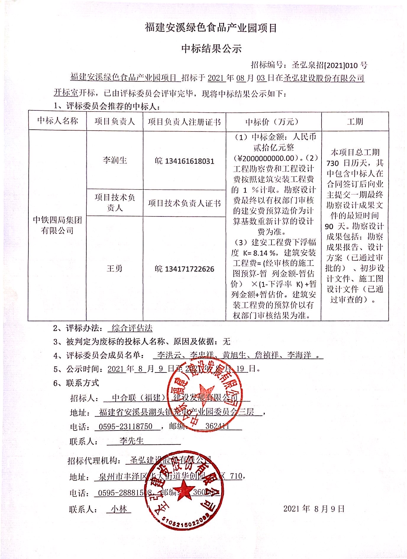 福建安溪绿色食品产业园项目中标结果公示