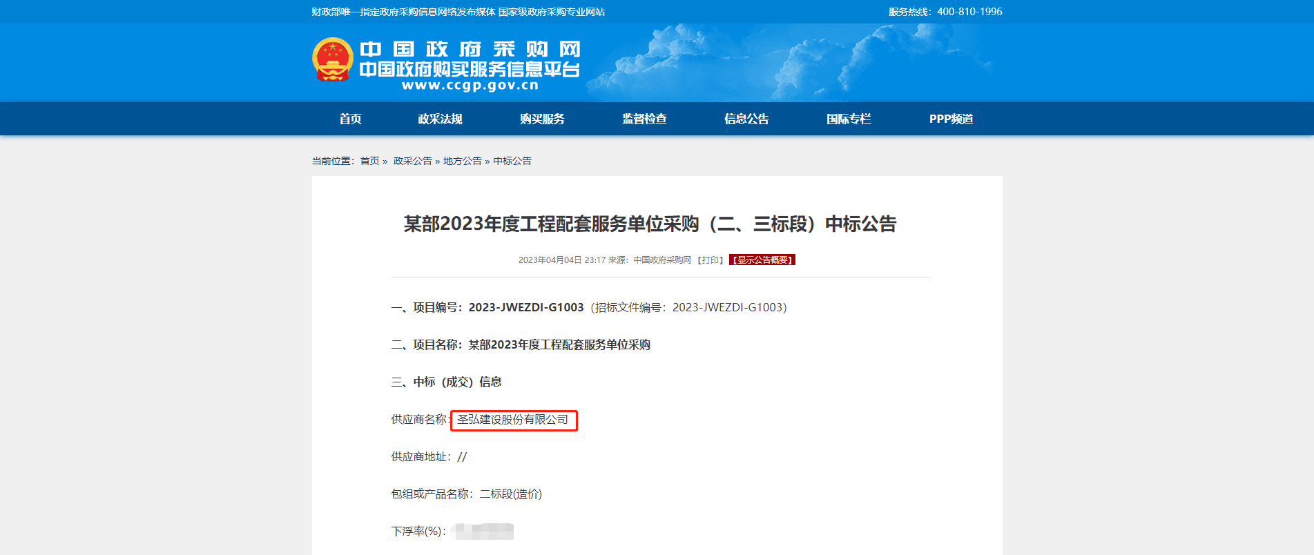 某部2023年度工程配套服务单位采购中标