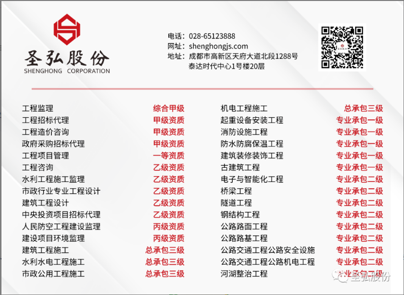 坚持“以品质赢项目,以项目赢发展”的品牌战略,切实打造全过程工程咨询服务企业名片,以过硬的专业水准、扎实的业务能力提升企业发展硬实力。长期以来,圣弘股份始终秉持着诚信、专业、进取、协同的企业理念,每一个圣弘人都时刻牢记以服务为基础,以质量为根本的企业准则,为客户提供优质、高效、专业、科学的监理服务。
