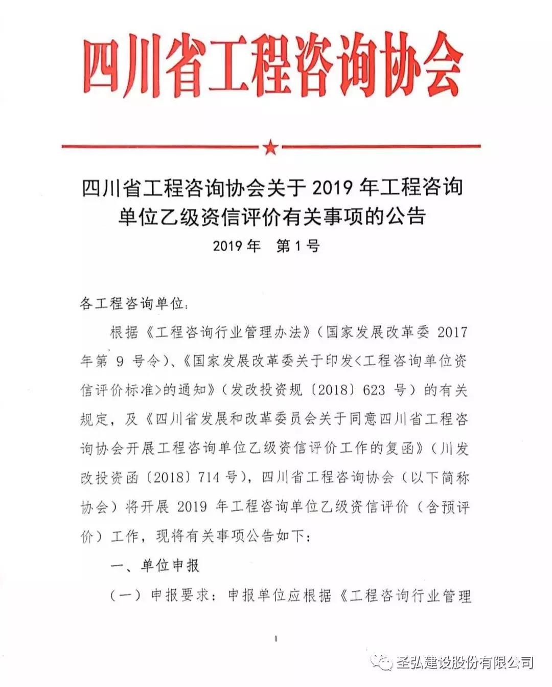 四川省工程咨询协会关于2019年工程咨询单位乙级